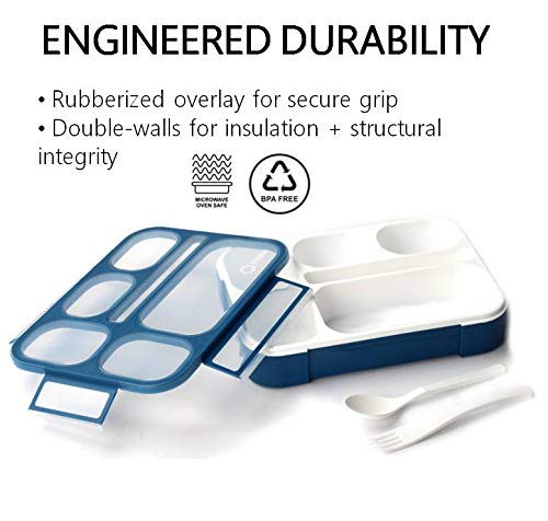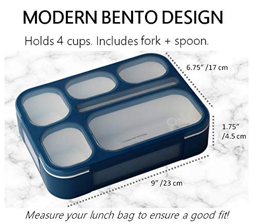 Compartment Leakproof School Bentobox | Portion Container Boxes with Utensils | BPA-Free | 1 Navy Blue Set